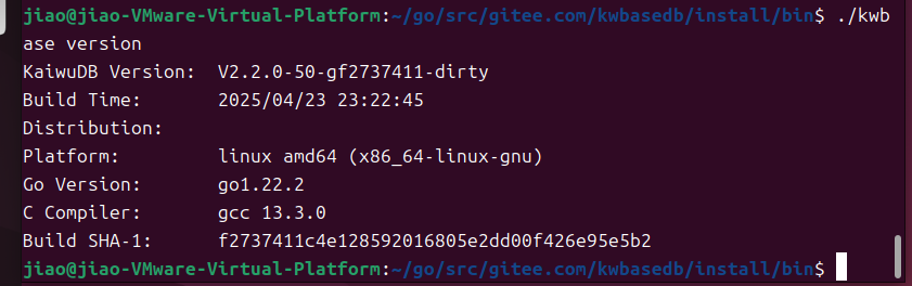 进入 kwbase 脚本所在目录,查看数据库版本,验证是否安装成功。
