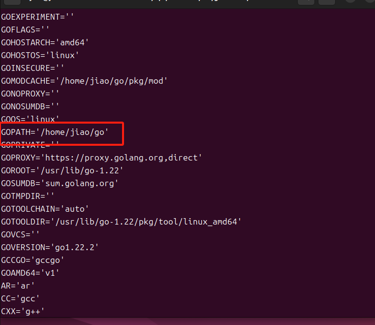 首先进入到代码下载路径/home/jiao/go,这里一定要和 export GOPATH="/home/jiao/go" 中的值保持一致