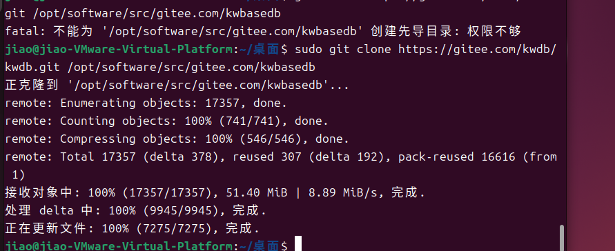 sudo git clone https://gitee.com/kwdb/kwdb.git /home/jiao/go/src/gitee.com/kwbasedb