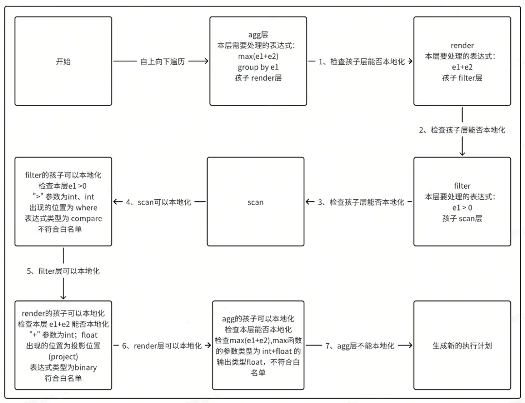 ① GroupBy:检查 group by 列与聚合函数(含输入类型、个数及运算逻辑)能否本地化;