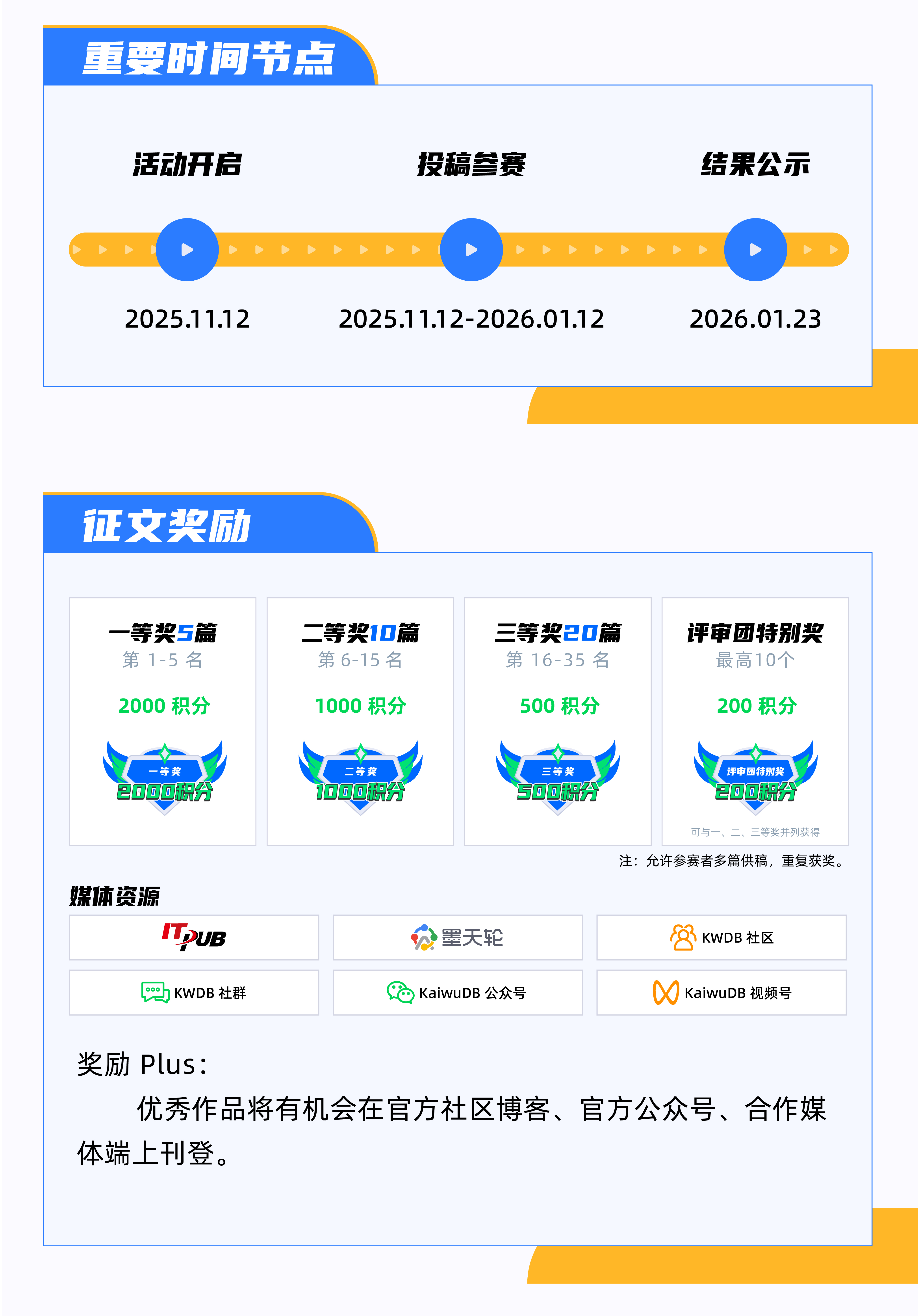 想了解往届开发者的精彩分享?点击查看👉 https://www.kaiwudb.com/chuangzuozhejihua/ 此刻,代码的火种已点燃,创新的征途正开启。无论是深耕场景的实践派,还是钻研内核的技术控,KWDB 的舞台都等你来!用文字记录技术思考,用代码传递开源力量 —— 这个冬天,让我们以技术为名,共赴 KWDB 的巅峰之约🔥!